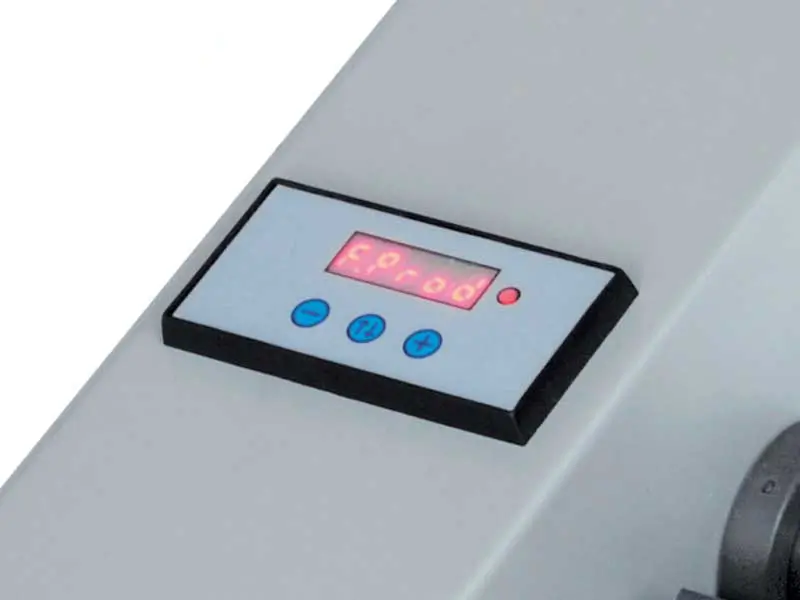 La scheda di controllo consente l’arresto automatico della rotazione del motore a fine bobina o in caso di rottura carta, con la possibilità di integrare un contatore elettronico a preselezione. Quest’ultimo permette sia un conteggio progressivo delle etichette erogate che regressivo, fino all’arresto automatico dopo aver raggiunto il numero programmato.